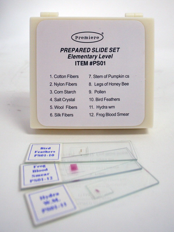 Glass Slides professionally stained, mounted and individually labeled for observation under the microscope. Each set is packed in its own 25 capacity labeled storage box.